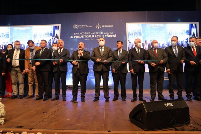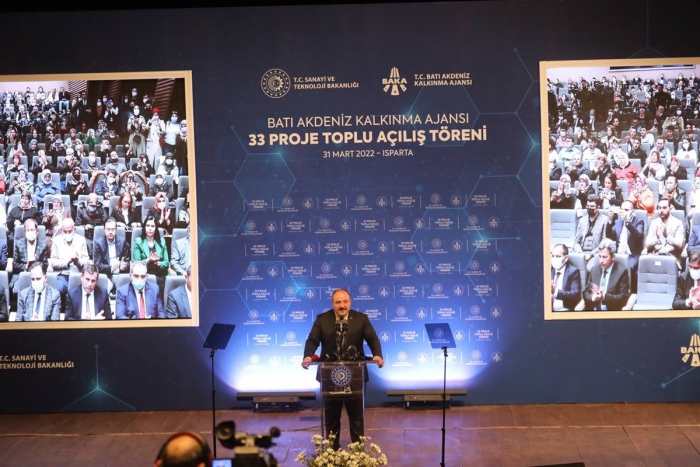 Sanayi ve Teknoloji Bakanı Mustafa Varank, Burdur, Antalya ve Isparta’da Batı Akdeniz Kalkınma Ajansı (BAKA) tarafından desteklenen 77 milyon bütçeye sahip 33 projenin toplu açılış törenine katıldı. Isparta Belediyesi Kültür Merkezi Konferans Salonunda düzenlenen toplu açılış törenine Sanayi ve Teknoloji Bakanı Sayın Mustafa Varank’ın beraberinde Burdur Valisi Sayın Ali Arslantaş, Isparta Valisi Sayın Ömer Seymenoğlu, Isparta Milletvekili Süreyya Sadi Bilgiç, Burdur, Antalya ve Isparta’dan belediye başkanları, kurum müdürleri, oda başkanları, iş insanları, proje sahipleri ve vatandaşlar katıldı.