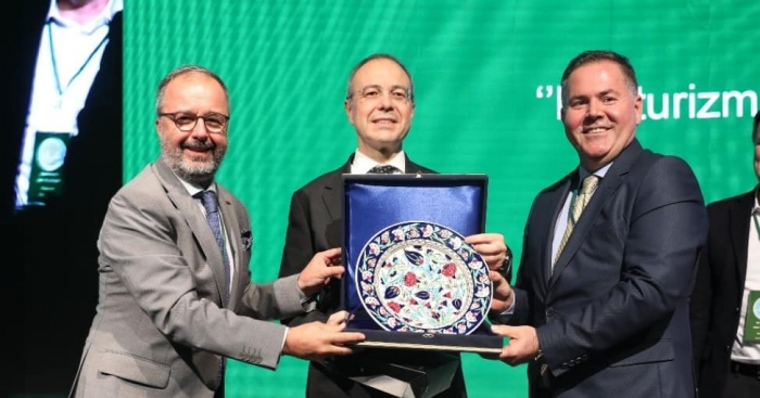 Katılımcılara paketleri, Yönetim Kurulu Üyelerimiz ve Genel Sekreterimiz tarafından takdim edildi. Panel sonrası düzenlenen ödül töreninde Birliğimiz, ‘Sürdürülebilir Turizmin Gelişime Katkılarından Dolayı’ ödül aldı. Ödül, Birliğimizi temsilen Yönetim Kurulu Muhasip Üyemiz Hasan Eker’e takdim edildi.