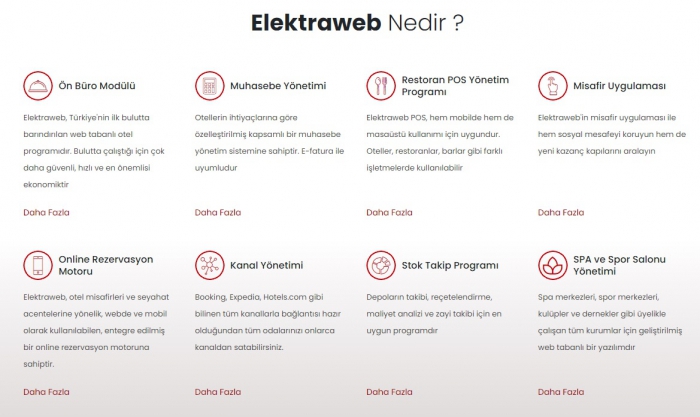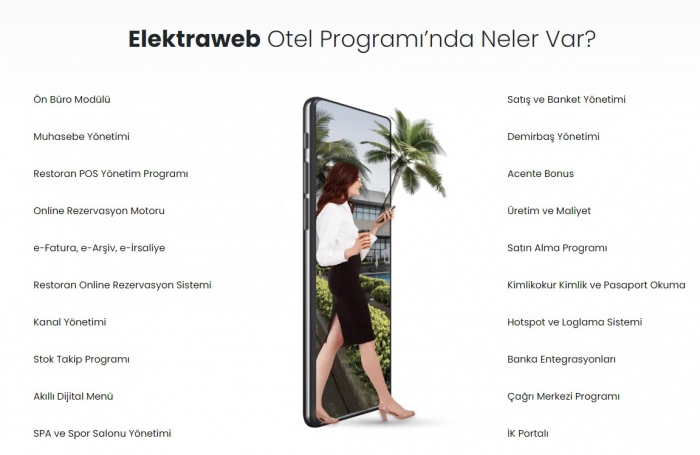 Otelcilik Sektörünün Dijital Beyni: ELEKTRAWEBTurizm ve konaklama sektörüne özel olarak geliştirilen ELEKTRAWEB Otel Yönetim Sistemi, her büyüklükteki otelin tüm departmanlarını entegre biçimde yönetmesini sağlayan 28 modüllük kapsamlı bir yazılım paketidir. Ön bürodan rezervasyona, muhasebeden kat hizmetlerine, SPA’dan CRM yönetimine kadar tüm süreçleri tek bir sistem üzerinden kontrol etmeye olanak tanır.