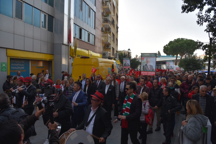 Ahmet Diker’in adaylık açıklaması bir mitinge dönüştü. Karşıyaka İZBAN istasyonunda bir araya gelen yüzlerce Ahmet Diker taraftarları ellerinde taşıdıkları Atatürk posteri, Türk Bayrağı ve Diker’in posterleri Kaf Kaf,Kaf Sin Kaf sloganları ile CHPKarşıyaka İlçe Örgütü'ne kadar yürüdü. 9 Eylül’de 2023 kişi ile zeybek gösterisi düzenleyen Diker, Karşıyakalıların isteği üzerini zeybek oynarken, izleyenler yoğun tezahüratta bulundu…