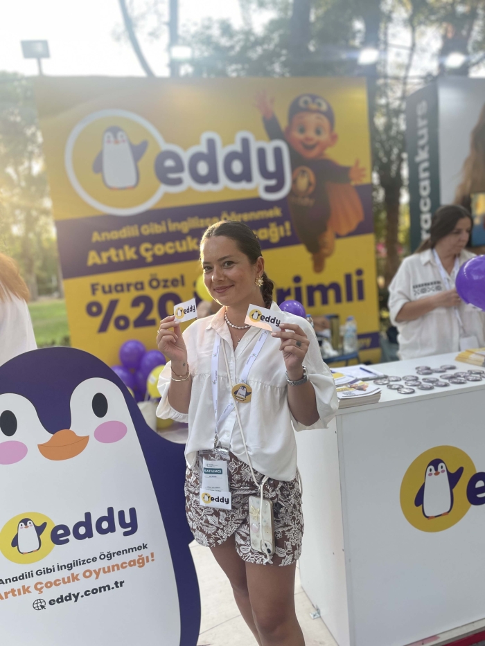 Edunova Grup'un teknoloji şirketi Edutech tarafından geliştirilen ve 4-12 yaş arası çocuklar için tasarlanan yapay zeka destekli İngilizce öğrenme platformu "Eddy", fuarda ilk kez görücüye çıktı. Canlı yabancı öğretmen desteği ile yapay zekayı birleştiren bu yenilikçi platform, çocuklarının dil eğitimine modern bir başlangıç yapmak isteyen ailelerin ilgi odağı oldu.