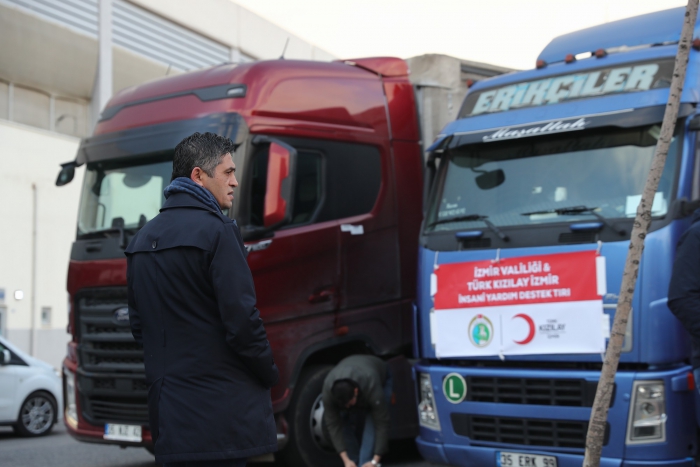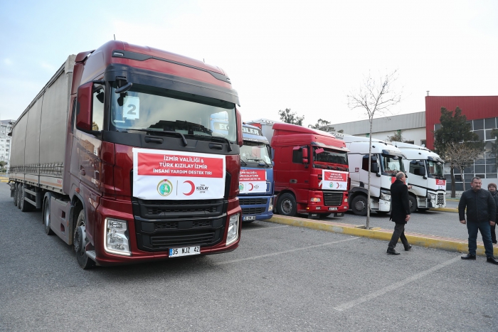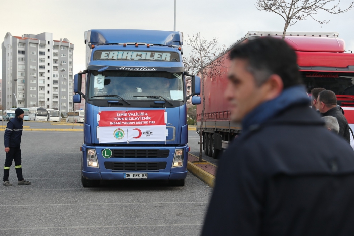 Kahramanmaraş'ın Pazarcık ilçesinde meydana gelen 7,7 ve 7,6 şiddetindeki depremlerin ardından Aliağalılar, bölgedeki depremzedeler için seferber oldu. Depremin yaralarını sarmak için tek yürek olan Aliağalılar tarafından toplanan yardımların ilk kısmı, beş tır ile deprem bölgelerine ulaştırılmak üzere yola çıktı.