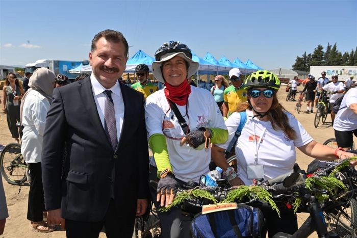 ZENGİN VE BEREKETLİ COĞRAFYA Zengin, bereketli ve kıymetinin bilinmesi bir coğrafyada yaşadıklarını Balıkesir Büyükşehir Belediye Başkanı Yücel Yılmaz, “Bir tarafımız Ege, bir tarafımızda Marmara, diğer tarafımızda ise İç Anadolu’ya uzanan coğrafyamız. Geniş yüz ölçümümüze oranla nüfusumuz oldukça az. Yaz sezonuna girdik. Bir milyondan fazla insanın ziyaret ettiği bir bölgedeyiz şuan. Bölgede; yaz aylarında kişi başı günlük ortalama bir kilogram olmak üzere her gün bir milyon kilogram çöp topluyoruz. İstiyoruz ki bu güzellikleri hep birlikte koruyalım, sahip çıkalım. Uzun yıllardır vahşi bir şekilde depolanan, doğayı, suyumuzu kirleten çöpü sorun olmaktan çıkardık. Vahşi depolama alanlarının hepsini kapadık, ıslah ettik” dedi.