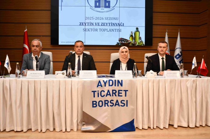 Başkan Çondur, Borsa'daki işlem hacimlerine de değinerek, "Aydın Ticaret Borsası’nda 2024–2025 sezonunda 29 bin 761 ton sofralık zeytin işlem görmüş, HMS ortalama satış fiyatı 60,13 TL olmuştur. Aynı dönemde 17 bin 878 ton zeytinyağı işlem görmüş ve HMS ortalama satış fiyatı 159,41 TL olarak gerçekleşmiştir.” bilgisini verdi.