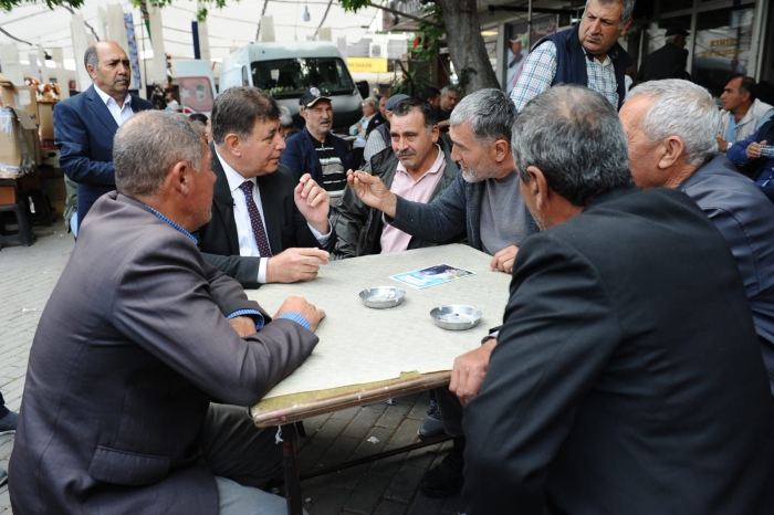 Cumhurbaşkanlığı 2. Tur seçimlerine günler kala saha çalışmalarına ve ziyaretlerine aralıksız devam eden Karşıyaka Belediye Başkanı Dr. Cemil Tugay, Kınık’ta sahaya indi. CHP Kınık İlçe Örgütü ile birlikte pazar ve esnaf ziyareti gerçekleştiren Tugay kahvehane toplantılarında hemşerilerine seslendi, Kılıçdaroğlu’na oy istedi.