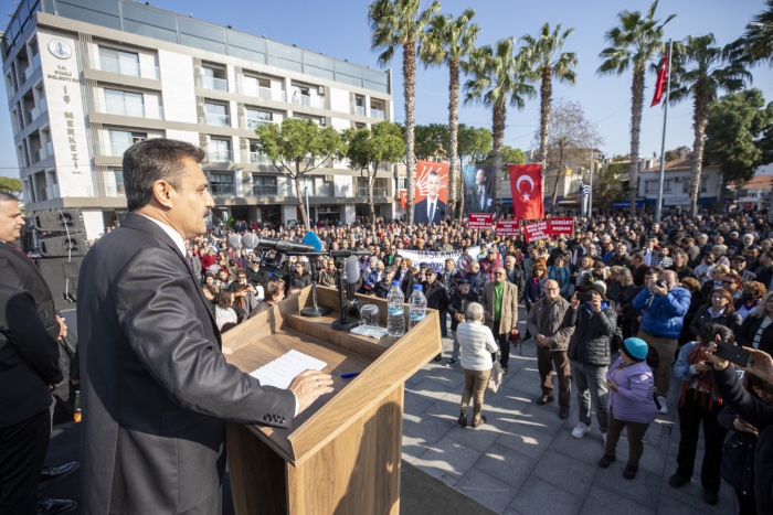 Dikili Atatürk Meydanı’nda miting havasında gerçekleşen aday adaylığı açıklama toplantısında Başkan Kırgöz, geçen 5 yıllık görev süresindeki hizmetleri ve gelecek döneme yönelik projelerini Dikili halkıyla paylaştı.