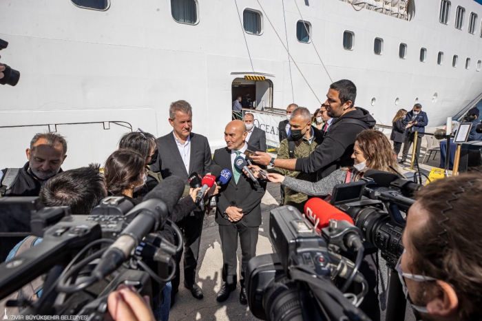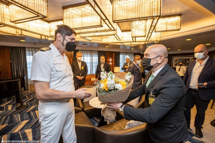 “Amacımız bu seferleri yoğun ve kalıcı şekilde arttırmak” İzmir Ticaret Odası Başkanı Mahmut Özgener ise İzmir’in geleceğinde turizmle ilgili büyük hedeflerin bulunduğunu belirterek, “İzmir sevgisiyle bu hedeflere ulaşmak için çalışıyoruz. 6 kıtada 60 ülkeyi gezecek bir turist grubu geldi. Bu, İzmir’in geleceği açısından önemli. Kruvaziyer seferlerini arttırabilmek için önemli çalışmalarımız var” diye konuştu.