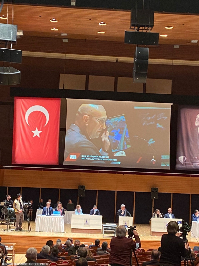 “Asla mazeret belediyeciliği yapmıyoruz” İzmir Büyükşehir Belediyesi bütün bunları yaparken, arkeolojik kazılar için 14 arkeolojik kazı noktası için geçen yıl 8 milyon lira kazı desteği vermiş. Bakanlığımız 1,8 milyon lira ayırmış. Diğer kuruluşlar 2,6 milyon lira ayırmış. 2022'de bu rakamı 10 milyona çıkaracağız. 3 ayda bir valilik tarafından organize edilen İzmir yatırımlarının değerlendirildiği bir toplantı yapılıyor. 2021 yılında veriler incelendiğinde İzmir Büyükşehir Belediyesi 2 milyara yakın yatırım yapmış. İlk 3 aylık 2022 verileri incelendiğinde İzmir'e toplam 635 milyon lira yatırım yapılmış. Bunun 500 milyon lirasını İzmir Büyükşehir Belediyesi yapmış. Özgür Hızal konuşmasını bitirirken önemli bir şey söyledi. Dedi ki “Sizinle bizim aramızda bir fark var”. Ak Belediyecilikten bahsetti, gösterdiği fotoğraflar hükümetin yaptığı yatırımlar. Doğrusu siz kim biz kim ben tam olarak anlamadım. Partisel anlamdaysa, ben onun muhatabı değilim ilgili partiyle siz görüşürsünüz. İzmir Büyükşehir Belediyesi olarak bizim asla mazeret belediyeciliği yapmadığımızı söylemem lazım. 40'a bir oranı neden değişmiyor. İzmir 95 milyar verirken 2,5 milyar yatırım alıyorsa bunun sebebi neden? Ben bunun hesabını sormak zorundayım. Koltuğumda oturan bir belediye başkanı İzmir'in Türkiye'deki vergi gelirlerinde aldığı payın niye bu kadar düşük olduğunu sorması lazım, ben de bunu soruyorum. Elektrik Fabrikası'nı soruyorum, niye sormayayım. İzmir’in hakkı bu, niye İzmir'e verilmiyor? Biz her şeye rağmen, mazeret belediyeciliği yapmadık yapmıyoruz bundan sonra da yapmayacağız. Bizim işimiz bu koşullara rağmen bu şehri ileriye taşıyacak ne varsa, bu şehirde yaşayan insanların yüzünü güldürecek ne varsa onu yapmaya gayret etmektir. Bir işi yapmanın bir yapmamanın bin sebebi vardır. Bizim sebebimiz aşk. Biz İzmir'i aşkla seviyoruz, İzmir için aşkla çalışmaya devam edeceğiz.