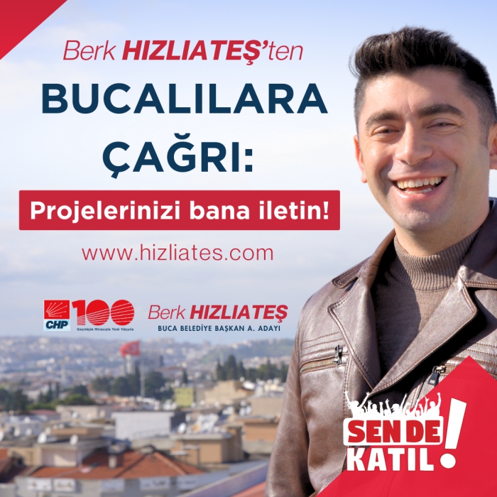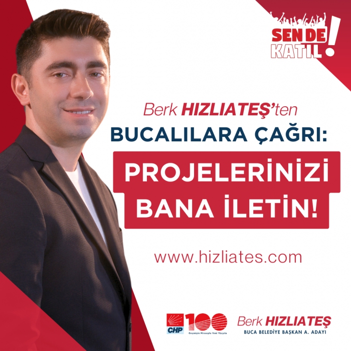 Cumhuriyet Halk Partisi Buca Belediye Başkan Aday Adayı Berk Hızlıateş, vatandaşlara kişisel internet sitesinde yer alan formu doldurarak projelerini iletme çağrısı yaptı.