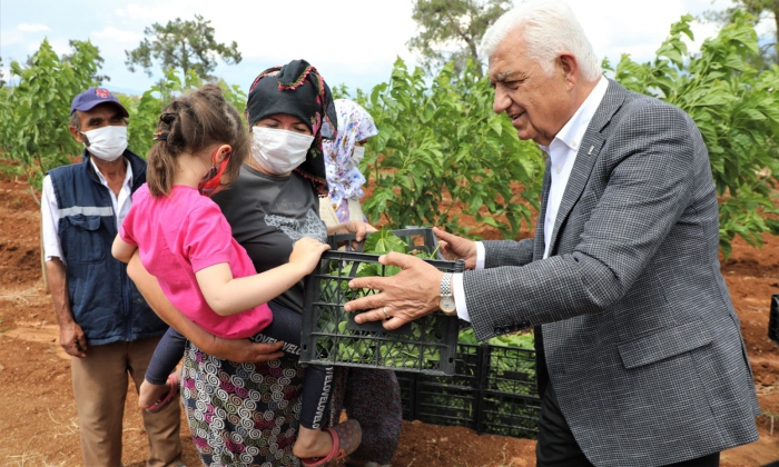 Muğla Büyükşehir Belediyesi ipekböcekçiliği üretimi için üreticilere dut fidanı, besleme evi desteklerine devam ediyor.