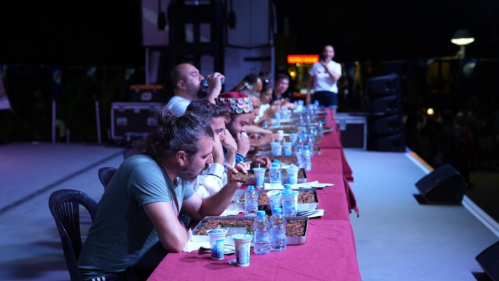 4 DAKİKADA 15 DİLİM BÖREK YEDİ Festivalin ikinci gününde ise etkinlikler ve gösteriler kent merkezindeki Atapark Meydanı’nda gerçekleştirildi. En çok çaykama yemek için yarışmaya giren 11 yarışmacı, Çaykama Yeme Yarışması’nda kıyasıya yarıştı. 4 dakika süren yarışmada 15 dilim çaykama böreği yiyen Hamza Karabulut ödülün sahibi oldu. Etkinlik, çeşitli ülkelerden gelen grupların katıldığı dans gösterileri ile devam etti.