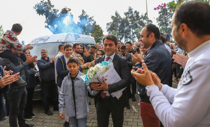 Dosyasını teslim etmek için eşi ve çocuklarıyla ilçe başkanlığına gelen Aydın'ı kalabalık bir grup karşıladı. Başvurusunun ardından bir konuşma yapan Aydın, büyük bir heyecan içinde olduğunu vurgulayarak şu ifadeleri kullandı: