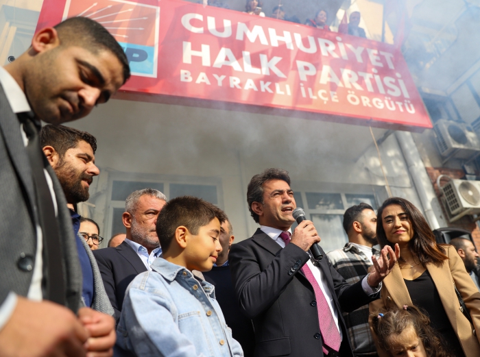 'Çok büyük bir ailenin üyesiyim' “Bu bir aile fotoğrafı. Cumhuriyet Halk Partisi ailem, dostlarım, kıymetli arkadaşlarım, yol arkadaşlarım az önce 2024 Mahalli İdareler Seçimi'nde Bayraklı Belediye Başkanı Adayı olabilmek için başvuru dosyamı ilçe başkanlığına teslim etmiş bulunuyoruz. Beni yalnız bırakmadığınız ve bana bu onuru yaşattığınız için çok teşekkür ediyorum. Çok sağ olun. Bu çok kıymetli bir görüntü. Kendimi çok büyük bir ailenin, çok onurlu bir üyesi olarak görüyorum. Siz de bana bunu bu şekilde hissettiriyorsunuz.”