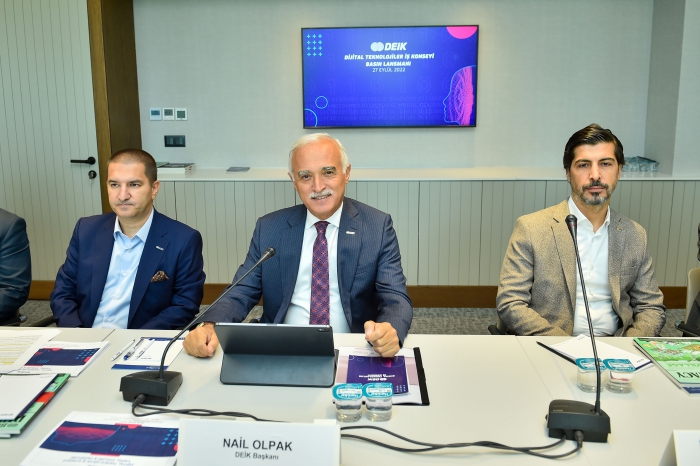 Türkiye'nin teknoloji ekosistemine yön veren yenilikçi şirketleri ve sektörde başrol oynayan iş insanlarını Dijital Teknolojiler İş Konseyi'nde buluşturduklarını dile getiren DEİK Başkanı Nail Olpak, "Küresel ekonomi açısından yeşil ve dijital dönüşümü bir arada yaşadığımız ve ikiz dönüşümü konuştuğumuz bir süreçten geçiyoruz. Biz bu süreçleri ‘'Yeşil Ekonomi'' ve ‘'Dijital Ekonomi'' süreci olarak adlandırıyoruz. Özellikle salgınla birlikte hayatın her alanında yapay zekanın öne çıktığını ve dijital teknolojilerin tüm disiplinlerinin bizi içine aldığını görüyoruz. Dolayısıyla gözümüzü ‘Dijital Ekonomi' kavramına çevirmiş durumdayız. Biz de DEİK olarak, Türk iş dünyasınınkuzey yıldızı olma kimliğimizle ülkemizi dijital teknolojilerin yeni merkezi haline getirmeye odaklanarak Dijital Teknolojiler İş Konseyi'mizi kurduk. Ne mutlu ki DEİK üyeleri ve firmalarımızdan gelen yoğun talep de bu stratejik adımı atmamızda bize en büyük itici güç oldu. Sektörün önde gelen ve potansiyeli yüksek şirketlerini konseyimize dahil ederek, dijital teknolojiler alanında öne çıkan 9 alt sektör özelinde kurduğumuz komitelerimizle birlikte çalışmalarımıza süratle başladık. Bu önemli atılımı gerçekleştirirken Cumhurbaşkanlığı Dijital Dönüşüm Ofisi de bize çok kıymetli desteklerde bulundu. DEİK olarak, dijital teknolojiler alanındaki şirketlerimize, girişimcilerimize, start-up ve scale-up'lara, yurt dışında yeni kapılar açmayı, bu topraklardan yeni dünya markaları çıkarmayı hedefliyoruz. DEİK'in teknoloji ve dijitalleşme alanında bir platform olmasını arzuluyoruz. 151 İş Konseyimizin dünyanın dört bir yanına yayılmış küresel networkünü de ülkemizdeki dijital teknoloji şirketleriyle buluşturacağız. Bu noktada DEİK'in ticari diplomasideki gücünü ve küresel ufkunu kullanarak, ülkemizin diğer ülkelerle dijital koridorlar oluşturmasını hedefliyoruz." dedi.