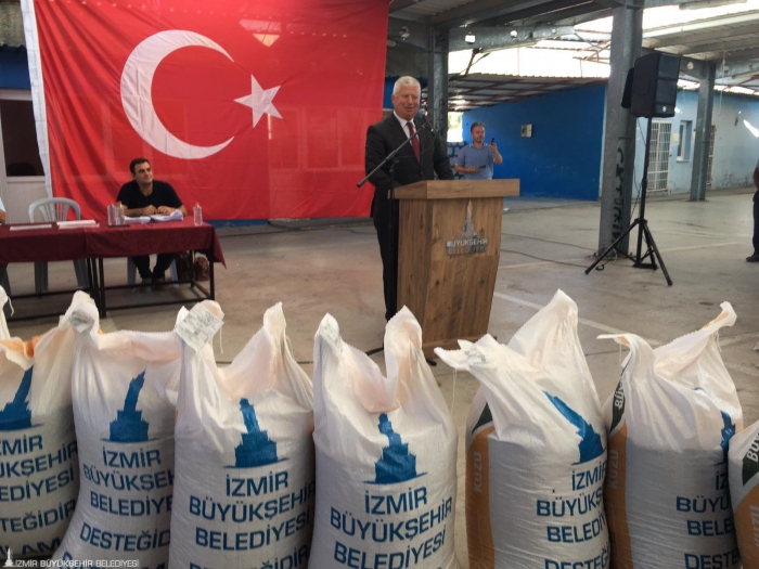 40 bin çuvala yaklaştı Aliağa, Bornova, Buca ve Kınık ilçelerinde büyükbaş hayvan yetiştiricilerine yönelik süt yemi desteğinde bulunan İzmir Büyükşehir Belediyesi, küçükbaş hayvancılığı “kuzu büyütme yemi” ile desteklemek amacıyla Kiraz, Torbalı, Beydağ, Tire ve Menderes ilçelerinde 678 üreticiye toplam 39 bin 91 çuval yem dağıttı. 2021’de Muğla’da ise yangından etkilenen üreticiye 7 bin çuval yem teslim edildi.