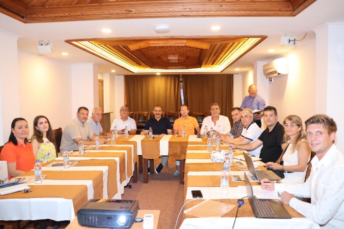 İhracatçıların taleplerini aktarmak ve sorunlarına çözüm bulmak amacıyla Muğla Valisi Orhan Tavlı’yı ziyaret eden Ege İhracatçı Birlikleri Koordinatör Başkan Yardımcısı Ege Yaş Meyve Sebze İhracatçıları Birliği Başkanı Hayrettin Uçak ve Ege Yaş Meyve Sebze İhracatçıları Birliği Yönetim Kurulu Üyeleri Türkmen Türkmenoğlu, Murat Ödül, Mehmet Kırıcı, Martin Sanford, Hüseyin Vural Güleç, Sadık Demircan, Makbule Çiftçi, Vildan Akgedik, Kenan Unat, Tolga Selim Kağan Yönetim Kurulu Toplantısı'nı da Muğla'da gerçekleştirdi.
