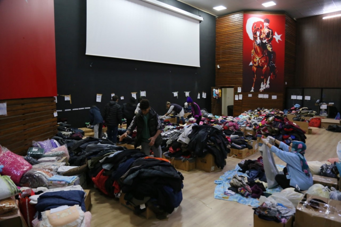 Vatandaşların büyük bir dayanışma örneği göstererek yardım için getirdiği ihtiyaç malzemeleri Şükrü Tunar Kültür Merkezi’nde belediye tarafından oluşturulan Afet Koordinasyon Merkezi’nde tasnif edilerek kullanıma hazır hale getiriliyor.
