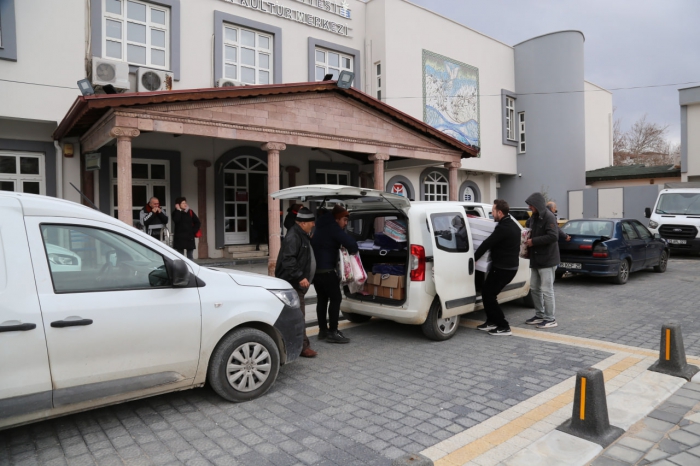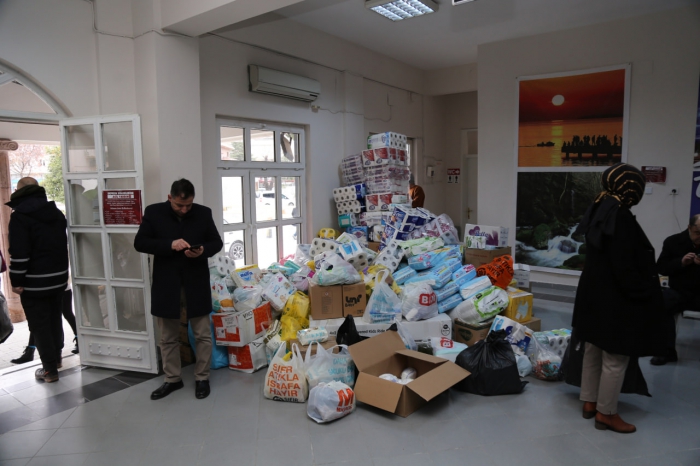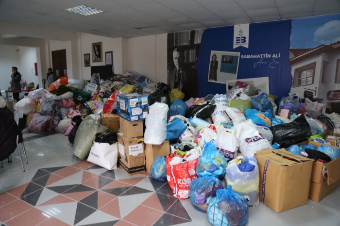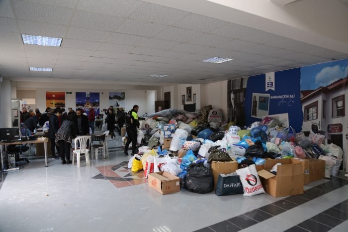 Şükrü Tunar Kültür Merkezi’nde toplanan yardımlar gerekli ayrıştırmaların yapılmasının ardından deprem bölgesine sevk edilecek.