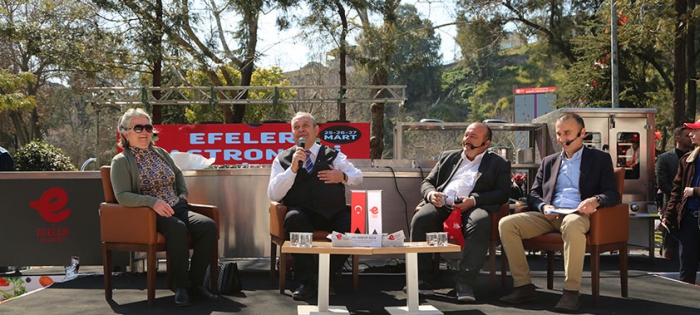 Ege Gastronomi Turizmi Derneği Başkanı Serdar Çelenk’in modere ettiği, enginar üreticisi genç girişimci Dilayda Bilge ve ADÜ Didim Meslek Yüksekokulu Aşçılık Programı Öğretim Görevlisi Mehmet Taş’ın konuk olduğu “Efeler’de Şimdi Enginar Zamanı” isimli söyleşide Efeler’in enginarı konuşuldu.
