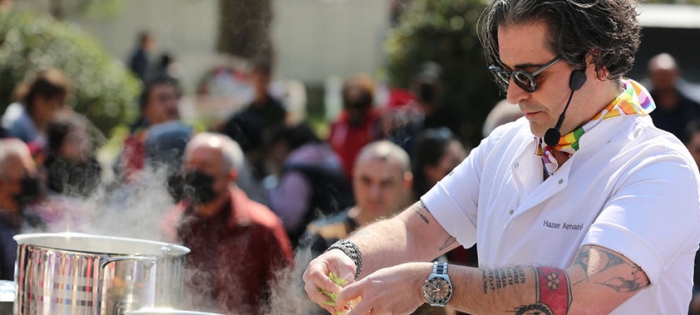 Festivalin ilk gününde başlayan mutfak atölyesi çalışmalarının ikinci gün aşçısı usta şef Hazer Amani oldu Amani, hazırladığı yemeklerdeki malzemeleri cumartesi pazarından temin etti. Efeler Belediyesi’nin 0 Kadın Emeği Tarımsal Ürün Fabrikası’nda üretilen konserve enginar ürünleri de usta şefin tabağına tat kattı. Hazer Amani, tamamen ilçenin yerli ürünlerini kullanarak hazırladığı pilava ise “Efe Pilav” adını verdi. Mutfak atölyesi çalışmasında hünerlerini sergilerken lezzet sırlarını da paylaşan usta şefin yemekleri, festivalin minik konuklarına ikram edildi.