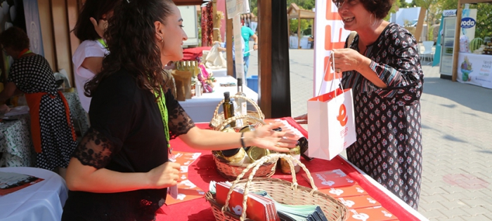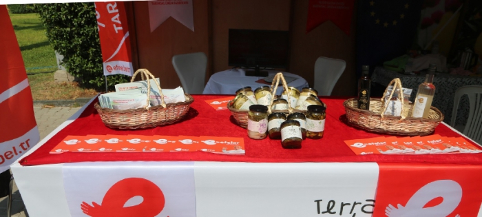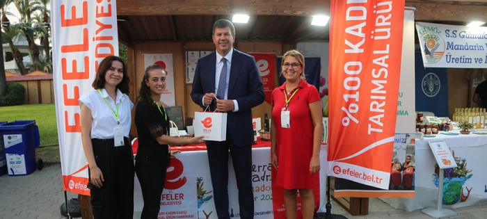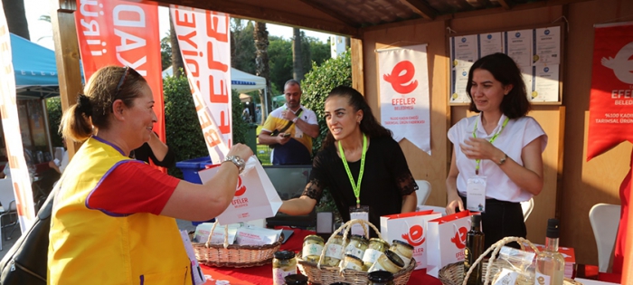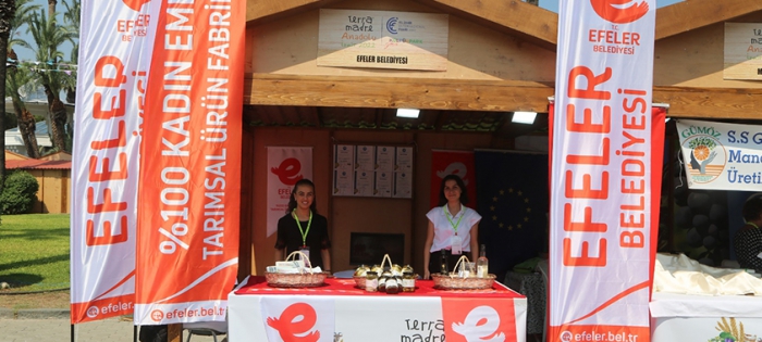Efeler Belediyesi’nin tarım arazilerinde yetiştirilen ve % 100 Kadın Emeği Tarımsal Ürün Fabrikası’nda işlenen enginar, şevketi bostan, kekik gibi ürünler 91’inci İzmir Enternasyonal Fuarı’nda, dünyanın en önemli gastronomi fuarlarından Terra Madre’de tanıtıldı. İtalya’nın Torino kentinde yıllardır düzenlenen ve Slow Food’un (Yavaş Gıda) önderliğinde, küçük ölçekli üreticileri desteklemek için 160 ülkeyi kapsayan Terra Madre ilk kez Türkiye’de kapılarını açtı. Efeler Belediyesi, 2 Eylül-11 Eylül tarihleri arasında fuardaki yerini alarak, % 100 Kadın Emeği Tarımsal Ürün Fabrikası’nı ve fabrikada ürünlerini tanıttı.
