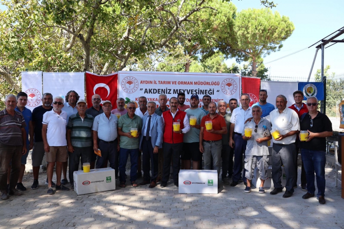 Akdeniz Meyve Sineği Tuzağı Dağıtım Töreni; Ege İhracatçı Birlikleri Koordinatör Başkan Yardımcısı ve Ege Yaş Meyve Sebze İhracatçıları Birliği Başkanı Hayrettin Uçak, Ege Zeytin ve Zeytinyağı İhracatçıları Birliği Başkanı Davut Er, Ege Yaş Meyve Sebze İhracatçıları Birliği Yönetim Kurulu Üyesi Sadık Demircan, Aydın Tarım ve Orman İl Müdürlüğü yetkilileri, Kuşadası İlçe Tarım Müdürü Gürsel Doğan’ın katılımıyla Aydın Kuşadası Davutlar’da gerçekleşti.
