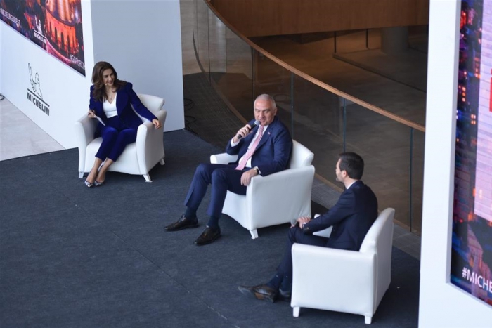 Bakan Ersoy ve Poullennec, konuşmaların ardından yöneltilen soruları yanıtladı ve Michelin maskotu ile fotoğraf çektirdi.