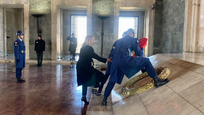 Girişimci İş Kadınları Federasyonu (GİFED) Yönetim Kurulu Başkanı Huriye Serter ve GİFED başkan yardımcıları, BUİKAD Başkanı Oya Eroğlu, Kadın İşveren ve Sanayiciler Derneği (KAİSDER) Başkanı Canan Karalar, KOİDER Kurucu Başkanı Nilgün Yılmaz, AFİKAD Başkanı Samiye Flancıoğlu ve KAİSDER üyelerinin katıldığı Ankara ziyareti, Anıtkabir’de Atatürk'ün mozolesine çelenk töreni ve saygı duruşu ile başladı.