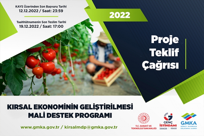 Güney Marmara Kalkınma Ajansı (GMKA), Sanayi ve Teknoloji Bakanlığı Kalkınma Ajansları Genel Müdürlüğü koordinesinde, Güney Marmara Bölgesinde (TR22) 20 milyon TL bütçeli Kırsal Ekonominin Geliştirilmesi Mali Destek Programı’nı ilan etti.
