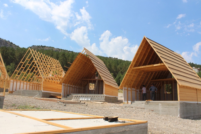 Sert yapısıyla 100 yıl ömrü olan ve ahşap işlerinin en değerli ürünü larex’ten imal edilen daireler gün yüzüne çıkmaya başladı. 50 mt2 22 adet yapılacak ahşap evler Tavşanlı gençliğine hizmet verecek. Belediye Başkanı Mustafa Güler “Göbel Termal Tesisleri’mizde önemli bir sosyal projeyi daha hayata geçiriyoruz. Piknik bölümünden Kurt Dede’ye uzanan alan içerisinde kamp amaçlı bungalov tarzı yapılar inşa ediyoruz. İnşallah yılsonunda tamamlanacak ve 2023’te hizmete alacağız. Bu projede bizlere destek sunan Gençlik ve Spor Bakanımız sayın Mehmet Muharrem Kasapoğlu’na teşekkür ediyorum” dedi