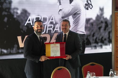 Galatasaray'a büyük bir gelir kazandırdı. Biz alışık değiliz kendinden önce kulübü düşünenleri görmeye. Şahsen bir Galatasaraylı olarak minnettarım kendisine. Avrupa'da Türk bayrağını en iyi şekilde taşıdı. Bizim yönetimimiz döneminde GSYİAD'ın destekleriyle inşallah biz hızlı bir altyapı hamlesiyle bir tesisleşme ile farklı bir yere getireceğiz. İnşallah o arada sevgili kaptanımız da Galatasaray'a omuz vermeye devam edecek. Umarım kısa bir sürede bizim yönetimimiz döneminde yaşanır." ifadelerini kullandı. Arda Turan'a GSYİAD'ın hazırladığı duygusal klip ve plaket takdiminin ardından söz alan 1905 GSYİAD Başkanı İbrahim Hatipoğlu "Öncelikle kendisine hepinizin önünde teşekkür etmek istiyorum. Bugüne kadar Arda'nın Galatasaray ve Türk futboluna nasıl hizmet ettiğini kademe kademe hatırlatmak istedik ama karelerle anlatmak mümkün değil. Herkes gülerken ağlayan bir kaptan Arda, onun için biz onun kıymetini bir ömür boyu bilmek zorundayız.