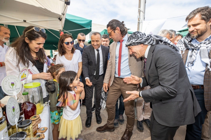 Terra Madre vurgusu Başkan Tunç Soyer Urla Cumhuriyet Meydanı’ndan başlayan ve tarihi Urla sokaklarını renklendiren festivalin stantlarını ziyaret etti. Özellikle şehir dışından gelen yurttaşlar başta olmak üzere çocuklar ve Urlalılar Soyer’e yoğun ilgi gösterdi.