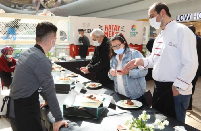 Hatay Gastronomi Evi şeflerinin özenle hazırladığı lezzetler, alışveriş için AVM’ye gelen vatandaşlar tarafından beğeniyle karşılandı.