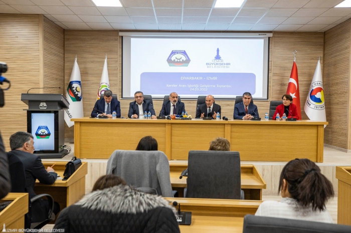 Başkan Soyer daha sonra Diyarbakır Ticaret ve Sanayi Odası'nda düzenlenen “Diyarbakır- İzmir Kentler Arası İşbirliği Geliştirme” toplantısına katıldı. Diyarbakır Ticaret ve Sanayi Odası Başkanı Mehmet Kaya, Başkan Soyer'i Diyarbakır'da ağırlamaktan mutluluk duyduklarını belirterek, “İzmir ile Diyarbakır'ın benzer birçok yönü var. Diyarbakırlı olup da İzmir'de yaşayan birçok insanı var. Davetimizi kırmayıp geldiğiniz için teşekkür ediyorum. Kentin birçok sorunu ile yüz yüze kalıyoruz. Elimizden geldiğinde gerek kadın derneklerimiz, kültür kurumlarımız, spor kurumlarımıza destek vererek, kentin gerçek kimliğini ve ruhunu muhafaza etmeye çalışıyoruz” dedi.