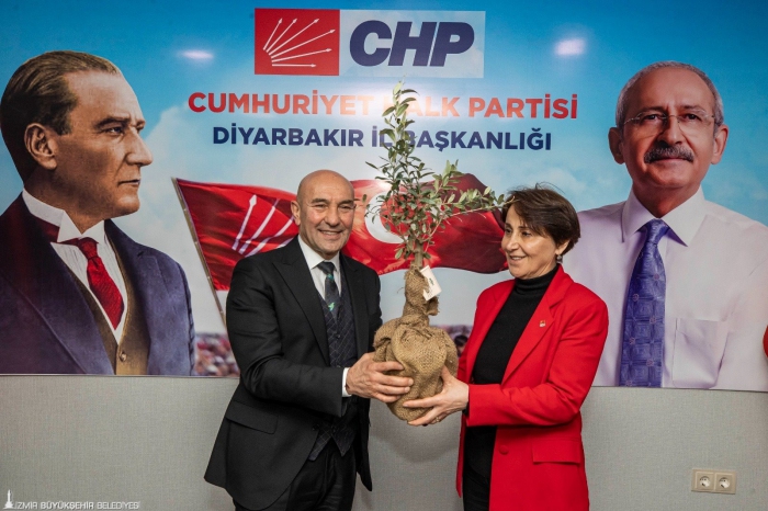 Başkan Soyer’e teşekkür CHP İl Başkanı Gönül Özel de gençlerin bu dönem Diyarbakır'da çok aktif olduğunu, güzel çalışmalara imza attıklarını belirterek, “Partiye çok şey kattılar. Hepsini çok seviyoruz. İnanıyorum ki Diyarbakır'ın kaderini hep birlikte değiştireceğiz” diye konuştu. Soyer, İl Başkanı Özel ve CHP'li ilçe başkanlarına İzmir'den getirdiği zeytin fidanını hediye etti. Özel, bu fidanı dikeceklerini ve elde edecekleri fidanları yeniden İzmir'e hediye edeceklerini söyledi. CHP İl Başkanlığı'ndaki programının ardından Diyarbakır'ın Sur ilçesindeki esnafı ziyaret eden Başkan Soyer, esnafın yoğun ilgisiyle karşılaştı.