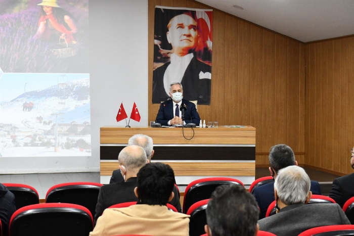Ben şuna inanıyorum Davraz Kayak Merkezi sayesinde Isparta turizmde biz de varız diyecek. Bunu önümüzdeki üç beş yıl içerisinde göreceksiniz. Batı Akdeniz'de de böyle bir kayak merkezi başka bir ilde yok. Allah buraya nasip etmiş. Kış sezonunda Davraz’daki tesisler sayesinde merkezdeki tesislerimiz de ekonomik yönden olumlu etkileniyor. Bu artarak devam edecektir. Onun için bu toplantının ana gündemine Davraz’ı koymak istedik. Isparta'da dört mevsim, 12 ay turizm yapmamız lazım. Aksi takdirde bu büyük yatırımların getirisi, maliyetini zor karşılar. İstiyoruz ki turizmi 12 aya yayalım ve 12 ilçemiz ile bütün köylerimizi de dahil ederek yaşayalım” dedi.