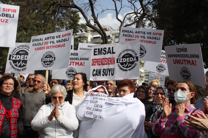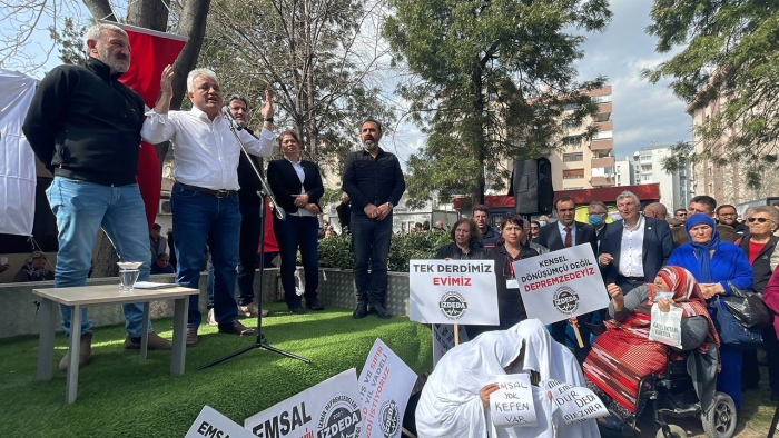 Bizim yapacağımız bir nevi kentsel dönüşüm. Detaylı zemin etüdü, Fore kazığı, Jetgrou, Radya temeli, zorunlu bodrum katı, son teknoloji ile büyük bir dönüşüm hikayesidir. Bu hikâyede yer almak isteyenler yanımızda olanlardır. TMMOB bu fırsatı tepmiş ve kamudan halktan ne kadar uzak olduğunu göstermiştir. Zira bize gösterdikleri ihtimamı, özeni aynı bölgede yapılan 48 katlı binalara göstermemişlerdir ve onlar gözümüzün içine baka baka yükselmeye devam etmekte, satışlar yapmakta, insanları oturtmaya başlatmışlardır. Kendilerini vicdana davet ediyorum. Diyorlar ki: İSTEMEZÜK! Diyoruz ki: NEYİ İSTEDİNİZ! Çözümünüz ne! Bugüne kadar neye çözüm ürettiniz. Bize çözümle gelin başımızın üstüne gelin. Ütopik fikirler Popülist söylemler ile gelmeyin. Biz sizlerle masaya oturmaya her türlü fikre, görüş alışverişine, dertlerimizi ilk ağızdan anlatmaya ve ortak çözüm yolu bulmaya hazırız. Bizler artık yorulduk, tükendik, yaşama ümidimizi kaybettik. Bir an önce siyasilerimiz İZMİR DEPREMZEDELERİNE kulak vermeli ve bizlerin diğer illerde olduğu gibi afetzede olarak görmelidir. • Ağır hasarlılara yaptığı gibi, orta ve az hasarlılarımıza da gerekirse ücreti mukabilinde evlerini yapmalı, • Ağır hasarlı depremzede kiracılarımızı da çözüm üretip kira derdinden kurtarmalı. • Rezerv alan bölgesine şu anda 3600 konut yapılmıştır daha önce söylendiği gibi 8500 konut yapımı tamamlanmalıdır. • Orta hasarlılarımıza rezerv alan bölgesinden söz verildiği gibi konutları verilmeli bölgeye • İzmir Depremzedesi hariç kimse sokulmamalıdır • Afet bölgesinde olduğu gibi evler yapılana kadar 5 bin TL kira desteği sağlanmalı. • O yer kavramıyla mağdur olan vatandaşlarımızın sorunlarının çözümü için TBMM’de çözüm üretilmelidir. • Bizlere 0 faizli 2 yıl ödemesiz 20 yıl ödemeli deprem destek kredisi tanımlanmalı, kentsel dönüşüm kredisi sarmalından çıkartılmalıdır.