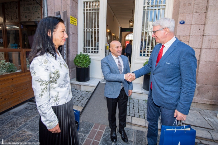 “İzmir gücünü yeniden toparlıyor” Litvanya Ankara Büyükelçisi Ricardas Degutis, Baltık ülkelerinin elçileri olarak İzmir ile ilişkileri geliştirmek istediklerini belirtti. Büyükelçi Degutis, 20. Avrupa Bölgeler ve Şehirler Haftası için Brüksel’e giden Başkan Soyer’e izlenimleri de sordu. Soyer, “10 yıldır Brüksel’e birçok kere gittim. Ama bu defa bizi anladıklarını gördüm ve çok mutlu oldum. İzmir kabuğunu kırıyor. Gücünü yeniden toparlıyor. Çok büyük bir zenginliğimiz var. Bu zenginliği anlatmamız lazım” şeklinde konuştu.