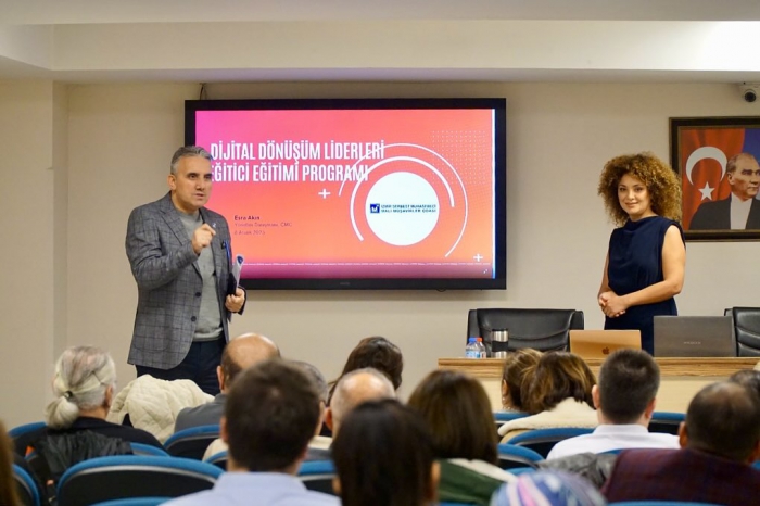 "İZMİR MALİ MÜŞAVİRLER ODASI, TÜRKİYE'NİN İLK DİJİTAL DÖNÜŞÜM LİDERLERİ EĞİTİCİ EĞİTİMİ İLE ÖNCÜ ROLÜNÜ GÜÇLENDİRİYOR!" İzmir Mali Müşavirler Odası, Türkiye’nin ilk Dijital Dönüşüm Liderleri Eğitici Eğitimlerinde büyük bir başarı elde etti. Mali Müşavirlik mesleğine dijital dönüşüm rehberliği sağlamayı amaçlayan ve dijital dönüşüme öncülük etmeleri hedeflenen eğitimler 60 a yakın eğitici adayın katlımı ile gerçekleşti. Benzersiz eğitim programı, katılımcılara dijital dönüşümde liderlik yapabilmeleri için gerekli bilgi ve becerileri kazandırarak sektörde bir ilki gerçekleştirmeyi hedefliyor.