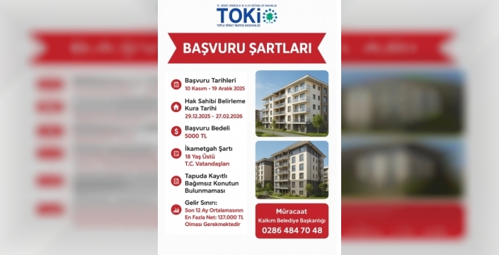 Başvuru şartları ve projeye dair diğer detayların, TOKİ ve Kalkım Belediyesi'nin resmi kanalları aracılığıyla ilerleyen günlerde kamuoyuyla paylaşılması bekleniyor.