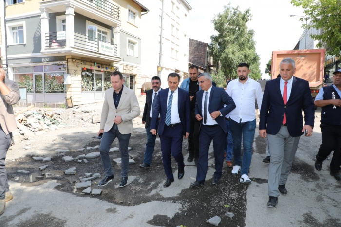 Vali/Belediye Başkan Vekili Sayın Türker Öksüz; Atatürk ve Karadağ Caddesi kaldırım, İstasyon Mahallesi Davut Aksu Caddesinde BSK yol çalışmalarını yerinde inceleyerek yetkililerden bilgi aldı.
