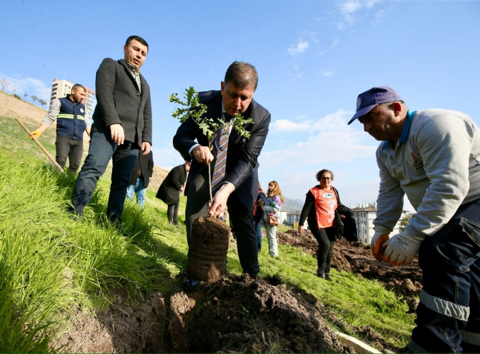 Karşıyaka Belediyesi, küresel iklim krizine karşı yerelde yürüttüğü çalışmalar kapsamında, kent içindeki ağaç ve yeşil alan varlıklarını hızla arttırmaya devam ediyor. Belediye, 5 yılda 100 bin ağaç hedefini süre dolmadan gerçekleştirirken, TEMA’nın destekleriyle cumhuriyetin 100. yılı anısına da 100 gönüllü 100 fidanı toprakla buluşturdu.