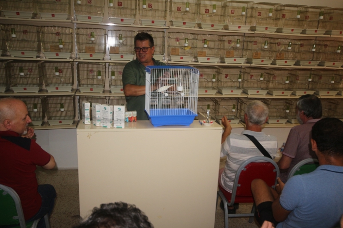 HEDEFİMİZ KARŞIYAKAMIZI KANARYA YETİŞTİRİCİLERİ ARASINDA DÜNYA MARKASI YAPMAK Açılış Saygı duruşu ve İstiklal Marşı’nın okunmasının ardından Karşıyaka Kanarya Severler Dernek Başkanı Erden Aksoy şunları söyledi; '2023 – 2024 sezonunu üye arkaşlarımız için bir önceki sezona göre daha başarılı geçmesini ve bol madalya ve ödüllü bir sezon olmasını diliyorum. Bizler Dernek Olarak Karşıyakamızı Yeşil Kırmızı renklerimizi yalnızca ülke içinde ki yarışmalarda temsil etmiyoruz ülke dışında gerçekleştirilen Dünya şampiyonalarına da katılıyoruz. Bizlerin amacı ve hedefi belli Karşıyakamızı Kanarya yetiştiricileri arasında dünyaya markası yapmak bunuda hep birlikte başaracağız. Bizlerin hedefi ülkemizde ki yarışmalarda alacağımız derecelerle sürekli olarak ilk beş içerisinde yer almak üretimlerimiz ve çalışmalarımız bu yönde elbirliğiyle ilerliyor. Gençlerimizin kötü alışkanlıklardan uzak durması için derneğimize katılımlarını sağlamak içi çalışmalarımız devam ediyor. Gençler arasında da Kanarya sevgisinde artış gözlemliyoruz.’ Dedi. Konuşmaların ardından dernek üyelerinin derneğe gelir getirmesi için bağışladıkları kanaryalar ve mamalar açık arttırmayla sahiplerini buldu.