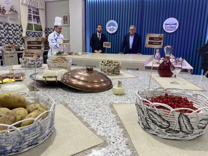 Büyükkılıç, gilaburu suyu, Yahyalı elması, Tomarza kabak çekirdeği, Uzun Yayla Çerkez Peyniri, patlıcan kurusu, İncesu’nun kuru üzümleri, pekmezden yapılan kedi bacağı gibi ürünleri tanıtarak, bilgiler verdi.