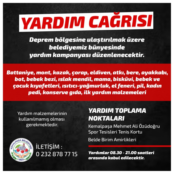 KEMALPAŞA BELEDİYESİ’NDEN DAYANIŞMA KAMPANYASI