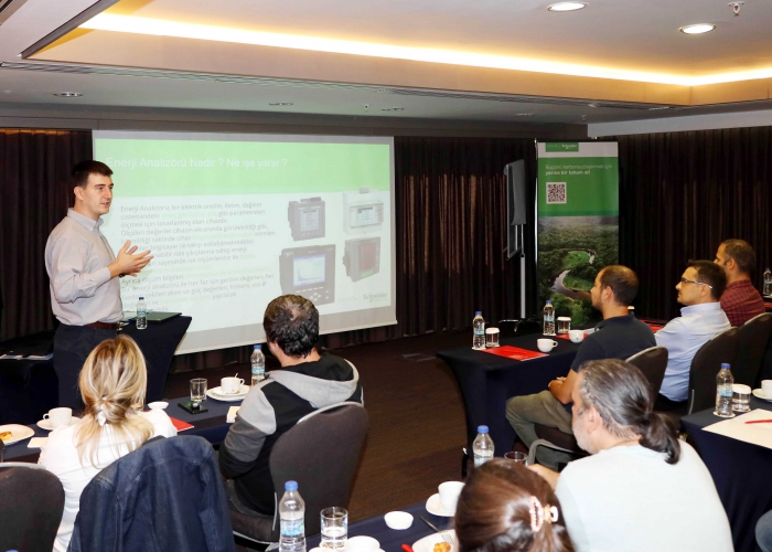 Daha sonra ‘Micro Şebekeler ve Yeni Enerji Alanları’ başlığı altında Schneider Electric EcoStruxure Çözüm Mimarı Mehmet Onur Aybar bir sunum gerçekleştirdi. Sunumunda Aybar, artan enerji talebini sürdürülebilir ve ucuz çözümlerle karşılamak için hayatımıza giren yenilenebilir enerji kaynakları ve yeni enerji alanlarını en verimli ve dirençli şekilde izleyip yönetmenizi sağlayan Schneider Electric Mikro Şebeke çözümlerini anlattı. Schneider Electric Servisler Satış Müdürü Ömer Sezer ise ‘Endüstride Ecofit ve Modernizasyon Çözümleri’ sunumuyla Schneider Electric Servisler Bölümünün faaliyetlerini dinleyicilerle paylaştı. Schneider Electric Enerji ve Sürdürülebilirlik Servisleri Lideri Burcu Akbaş ise ‘Endüstride Sürdürülebilirlik ve ISO 50001 Uygulamaları’ başlığı altında bir sunum yaptı. Enerji Yönetiminin üretim kalitesinden, güvenlikten fedakârlık etmeksizin ve üretimi azaltmaksızın enerjinin verimli kullanımı doğrultusunda yapılandırılmış ve organize edilmiş disiplinli bir çalışma olduğunu söyleyen Akbaş, “Doğru enerji yönetimi ile Enerji maliyetlerinin azaltılması, daha az sera gazı emisyonu, değişen enerji fiyatlarından daha az etkilenme, iyileştirme fırsatlarına ilişkin bilgi ve kurumsal imaj için olanak sağlar” dedi.