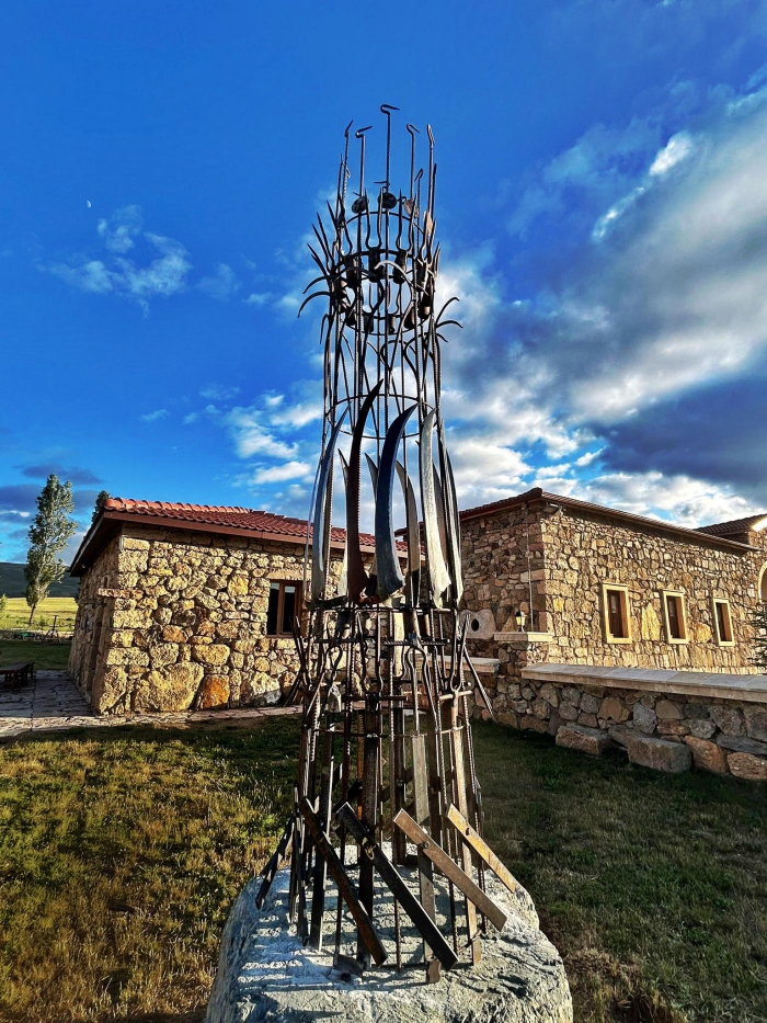 Sanatçı yerleştirme programı kapsamında hayata geçirilen eser, “Unutulan Birlikteliğe Adanmış Bir Anıt” mottosuyla Anadolu’da kök salmış imece kültürünün, topluluk dayanışmasının ve üretim odaklı yaşam biçiminin nasıl aşındığını sembolik anlatımla gözler önüne seriyor.