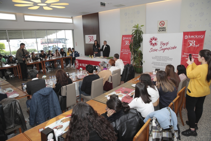 “KADINLAR YÖNETİYOR” Kadının varlığının her ortamda nezaket ve kaliteyi beraberinde getirdiğini vurgulayan Bağış “Toplumda kadın iş hayatına girmekle özgürleşmeli” dedi. Bağış, toplumda örnek bir kadın yönetici olmak konusunda sorumluluk hissettiğini belirterek “Ne ben ne ailem bir kadın olarak yönetici olmanın zor olacağını hiç düşünmedik. Her zorluğu aştım. Yönetim kadromuzda kadın çalışan oranı yüzde 95. Kırçiçeği'ni kadınlar yönetiyor diyebiliriz. Şirket genelinde ise kadın çalışan oranı yüzde 45. Restoran müdürü, pide ustası, garson, komi.. Kadınlar bu şirkette her yerde” dedi. “ŞEFLERLE BULUŞUYOR” Öte yandan Kırçiçeği’nin 38’inci yıla özel düzenlediği “Şeflerle Buluşuyor” etkinliği tüm hızıyla devam ediyor. Emsalsiz lezzet reçetelerinin paylaşıldığı etkinliğin ilk konuğu şef Ahmet Güzelyağdöken olmuştu. İzmirlilerin yoğun ilgi gösterdiği etkinliğin ikinci konuğu ise Şef Elif Edes oldu. Yaşar Üniversitesi Gastronomi Topluluğu öğrencileriyle bir araya gelen Edes, Kırçiçeği'nin dört ayrı lezzetini yeniden yorumladı. Smyrina adını verdiği kahvaltı pidesi, Bergama tulumu ile lezzetlendirdiği Kibele, karemelize soğanla lezzet üstüne kavuşturduğu İonia, lor-tahin-ceviz-muz ve çikolata ile tatlıların kraliçesi olan Demeter, Kırçiçeği lezzet aşıklarından tam not aldı. Kırçiçeği Yönetim Kurulu Başkanı Kemal İpbaş, Edes'e katkıları nedeniyle teşekkür plaketi sundu.