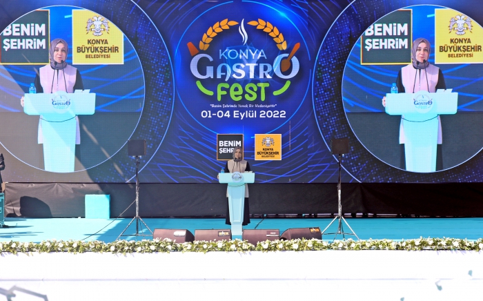 Özellikle 200 yıllık Selçuklu başkentliği döneminde, saray mutfağının en güzel lezzetlerinin merkezi oldu” dedi. Çevre Şehircilik ve İklim Değişikliği Bakanı Murat Kurum, “Konya mutfağı için ‘Yiyen hayran, yemeyen pişman!’ derler. Konya Mutfağı; Çatalhöyük’te doğan medeniyetlerle başlayan, Selçuklu saraylarında gelişen ve Mevlevî adap ve erkânıyla yoğrulan muhteşem bir birikimdir.” ifadelerini kullandı. AK Parti Genel Başkan Yardımcısı ve Konya Milletvekili Leyla Şahin Usta, yemeğin sadece karınları doyurmak değil, gönülleri doyurmak gibi önemli bir yönü olduğunu vurgulayarak, GastroFest’in hayata geçirilmesindeki katkılarından dolayı Emine Erdoğan’a teşekkür etti. Cumhurbaşkanı Recep Tayyip Erdoğan’ın eşi Emine Erdoğan, huzurun, hoşgörünün ve misafirperverliğin şehri Konya’da olmanın mutluluğunu yaşadıklarını belirterek, “Konya Büyükşehir Belediye’mize büyük bir titizlikle hazırlanan bu organizasyonda bizleri konuk ettiği için şükranlarımı sunuyorum. Konya Anadolu’nun özünü ruhunda yaşatan son derece özel bir yer. Dünyanın en eski yerleşim merkezlerinden biri olan bu kadim şehirde birçok medeniyetin ve kültürün izini sürüyoruz. Yüzümüzü çevirdiğimiz her yerde bizi karşılayan tarihi eser zenginliği, insanda adeta bir açık hava müzesi etkisi bırakıyor. ” diye konuştu. Konya Büyükşehir Belediyesi'nin şehrin yemek kültürünün tanıtımına katkı sağlamak için bu yıl ikincisini düzenlediği Konya GastroFest, Kalehan Ecdat Bahçesi’nde hazırlanan açılış programıyla başladı.