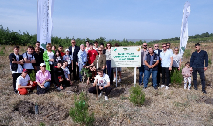 Türkiye Cumhuriyeti’nin kuruluşunun 100. Yılı kapsamında Ege Orman Vakfı tarafından hayata geçirilen “Yüzüncü Yıl Ormanları’na 10 bin fidan bağışı yapan KOSBi, 100. Yıl Cumhuriyet Ormanı’nı oluşturdu. Manisa- Soma-Işıklar mevkiinde oluşturulan Ormanda KOSBİ çalışanları ve Özel KOSBİ Zülfü Mevlüt Çelik Mesleki Teknik Anadolu Lisesi öğrencileri hep birlikte fidan dikimini gerçekleştirdi. Törene, KOSBİ Yönetim Kurulu Başkanı Erol Diren, KOSBİ Yönetim Kurulu Başkan Vekili Hüseyin Eren ile Ege Orman Vakfı Genel Müdürü Perihan Öztürk de katıldı.
